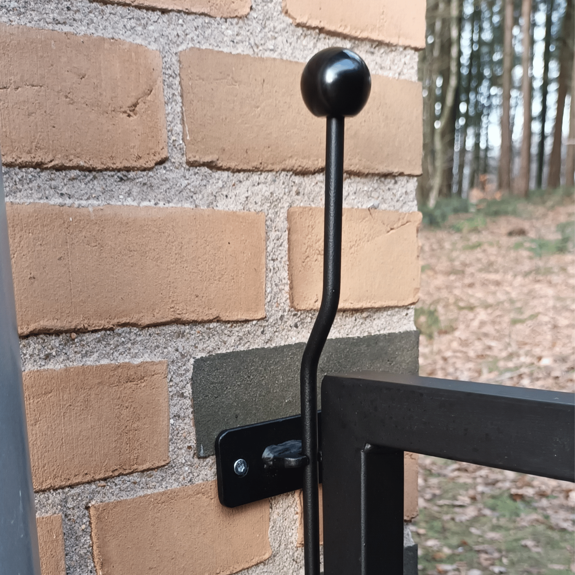 Stor flot låge med fjedret lågelås – pulverlakeret sort, hvilket giver en meget slidstærk overflade og flot finish.
