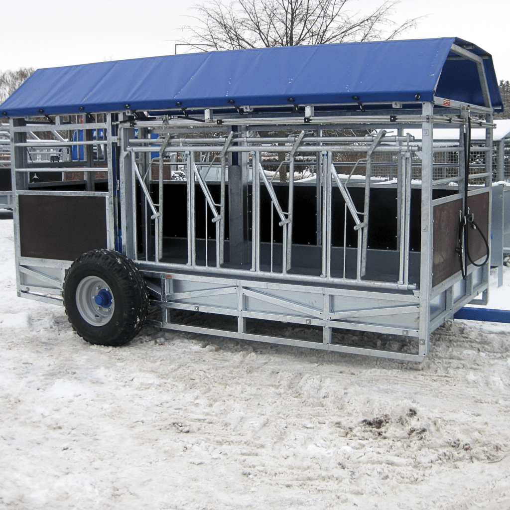 Det unikke ved denne vogn er, at den er udstyret med 4-dyrs fanggitter på højre langside. Af standardløsninger for ekstraudstyr, valgte kunden, at udstyre vognen med tag.