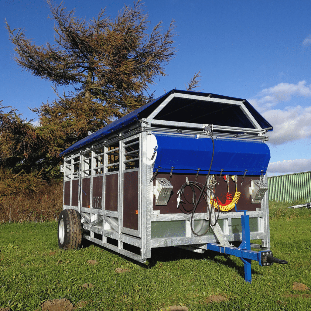 Det unikke ved denne vogn er, at den er udstyret med luft-hydrauliske bremser, bremseklodser, samt specialtilpasset trækstang. Af standardløsninger for ekstraudstyr, valgte kunden at udstyre vognen med tag, lys og skillerum.