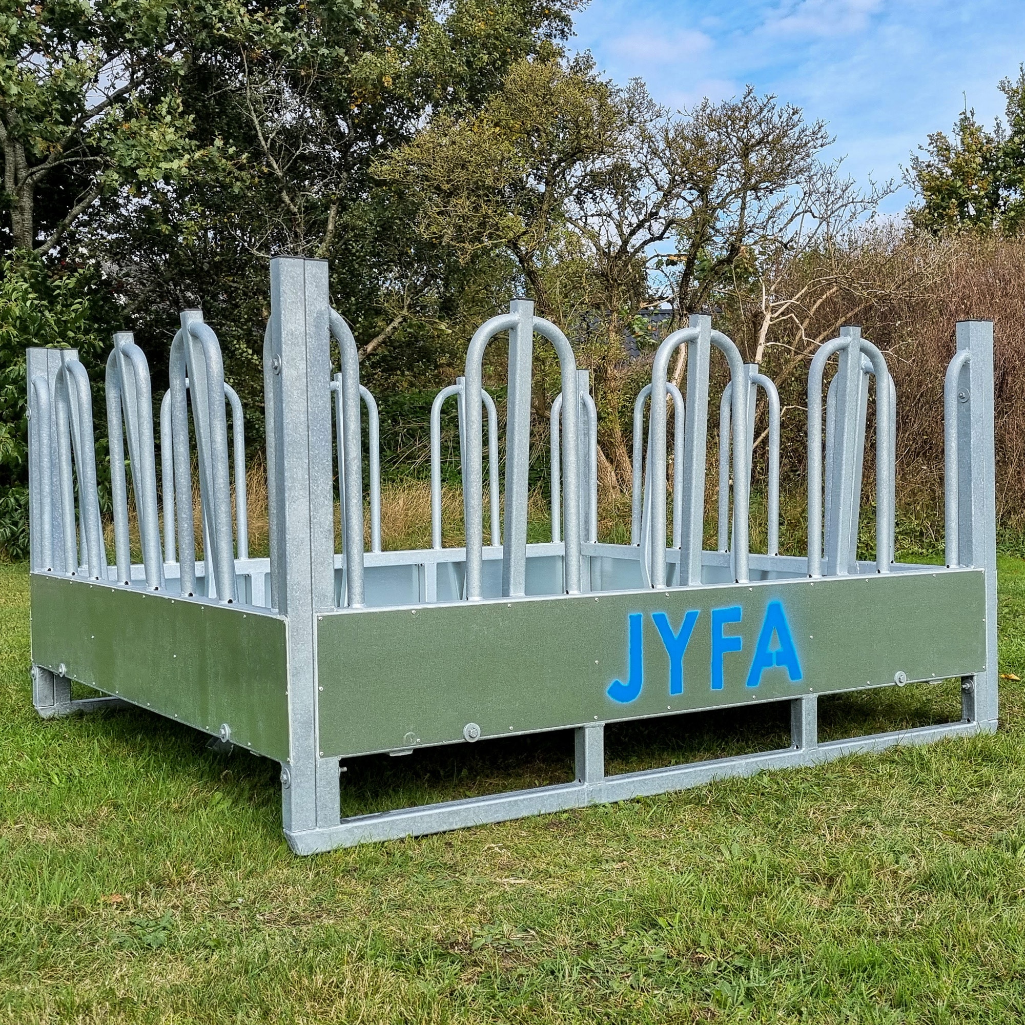 Fodrer du med rundballer og vil undgå, at dyrene splitter ballen ad og tramper fodret ud over hele folden, er denne Rundballeboks den perfekte løsning! Boksen samler fodret og fungerer samtidig som et naturligt opholds- og samlingssted på marken for dyrene.