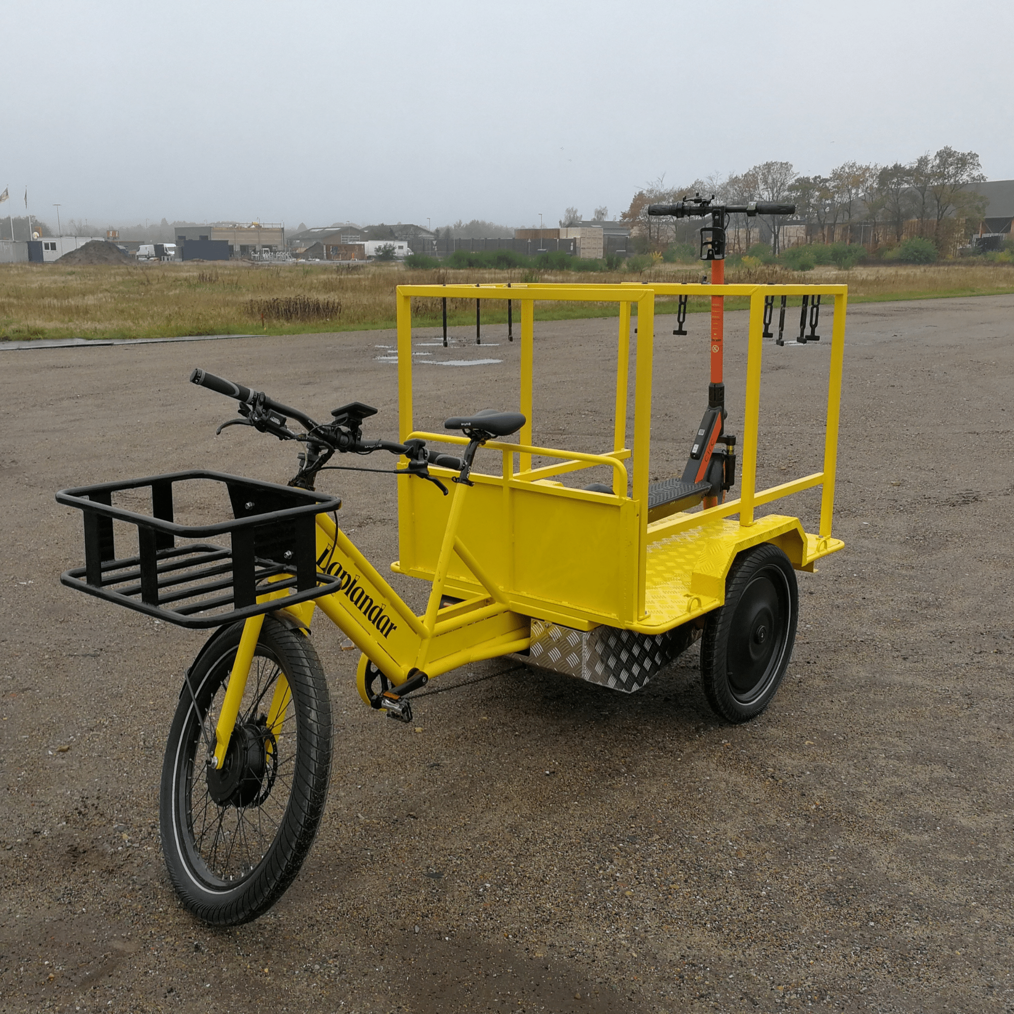 Traileren er pulverlakeret gul i samme farve som cyklen og er integreret direkte på cyklen, så den fremstår som en naturlig del af helheden. Resultatet er en praktisk, smidig og gennemtænkt løsning, der er perfekt til effektivt arbejde i bymiljøer.