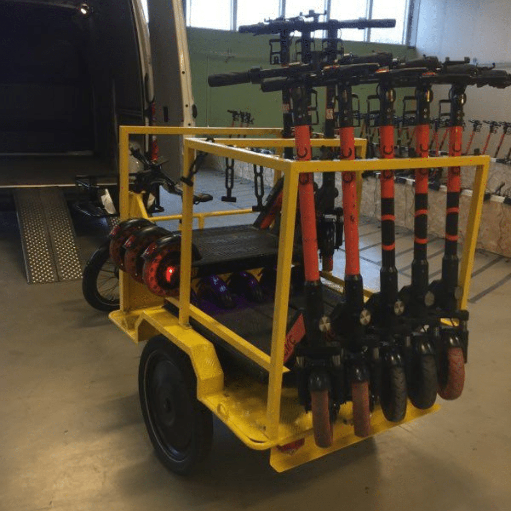 Denne smarte trailer er designet, så kunden nemt og effektivt kan køre rundt i større byer og samle løbehjul op. Traileren gør det muligt at transportere flere løbehjul ad gangen – også i områder, hvor det enten er umuligt eller besværligt at komme frem med bil.